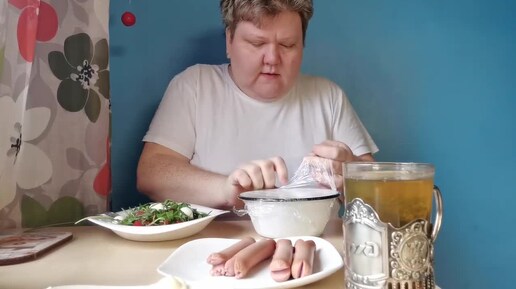 Завтрак: салатик, сосиски, яички, печеные яблочки, чаёк, шоколадка и зефирка 😁