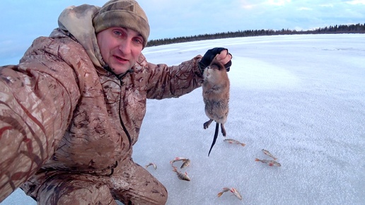 Ловил рыбу, а добыл ондатру. зимняя рыбалка на тундровом озере. Рыбалка с эхолотом и камерой Калипсо.