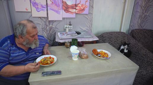 Вкусно покушали вместе с отцом картошку с мясом Подвязал помидоры в горшках Читаю Ваши комментарии на канале ПОДВАЛ ИЛЬИЧА