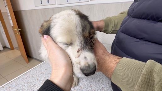 Привезли спасённого щенка с гниющим глазом в ветклинику