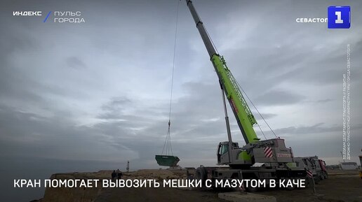 Кран помогает вывозить мешки с нефтепродуктами в Каче
