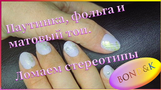 Как правильно наносить паутинку на ногти. Фольга и матовый топ. Наращивание на нижние формы.