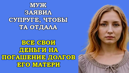 Муж заявил супруге, чтобы та отдала все свои деньги на погашение долгов его матери...Правдивые истории из жизни