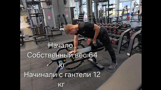 Первые шаги в зале . Гантели 12 кг и спустя 3 месяца 40 кг . И 14 кг мышц !