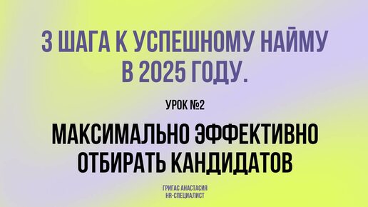 3 ШАГА К УСПЕШНОМУ НАЙМУ В 2025 ГОДУ. УРОК №2. КАК МАКСИМАЛЬНО ЭФФЕКТИВНО ПОДБИРАТЬ КАНДИДАТОВ?