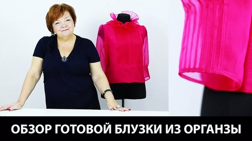 247 Модель яркой блузки из органзы с длинным рукавом стойкой и защипами. Работа с органзой
