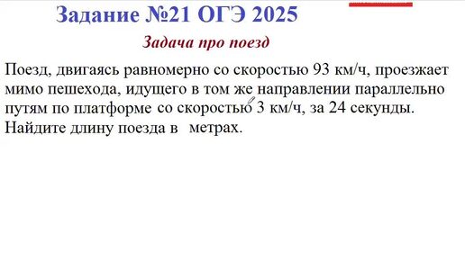 Задача про поезд и пешехода. Задание №21 ОГЭ по математике из банка ФИПИ