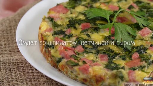 Не на сковороде, а в духовке. Омлет со шпинатом, ветчиной и сыром