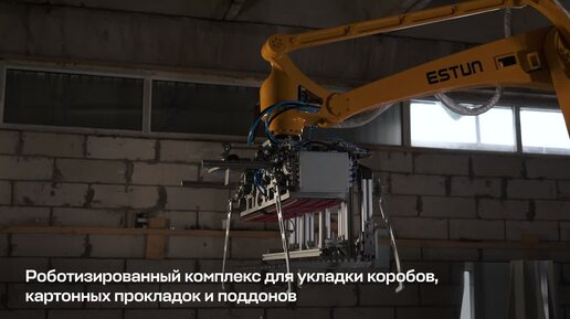 Робот укладывает короба с метизами на паллету