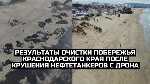 Результаты очистки побережья Краснодарского края после крушения нефтетанкеров с дрона