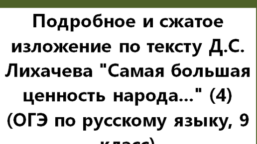 Аудиотекст, подробное и сжатое изложение по тексту Д.С. Лихачева "Самая большая ценность народа..." (4) (ОГЭ по русскому языку, 9 класс)