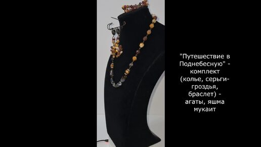 Комплект -"Путешествие в Поднебесную" - колье, серги-гроздья, браслет- яшма мукаит, агаты