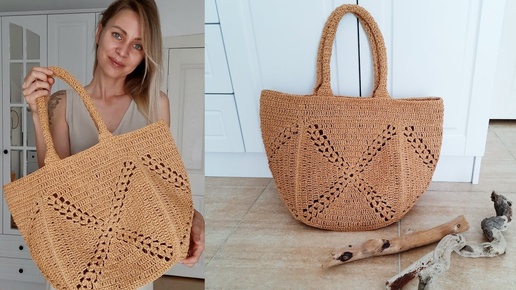 Пляжная сумка из рафии _ Обзор и схема вязания