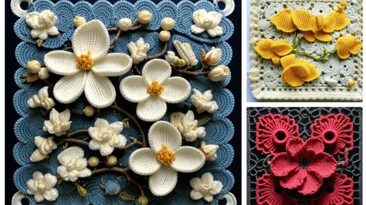 Квадратные вязаные мотивы с ЦВЕТАМИ от нейросети. ПОДБОРКА №19.