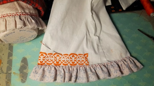 Оборка в наряде народной куколки Выполняю при помощи ручного шва "перекрут"