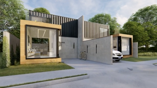 Маленький дом из контейнера на две семьи