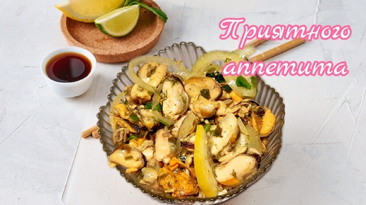 Маринованные мидии с луком и лимоном