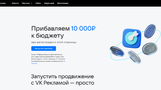 Реклама ВК. Регистрация рекламного кабинета. Как получить бонус 10000 рублей на счёт?