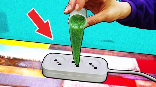 Что если залить или засыпать в розетку разные предметы. Эксперимент со снегом, лизуном, карандашом, наушниками