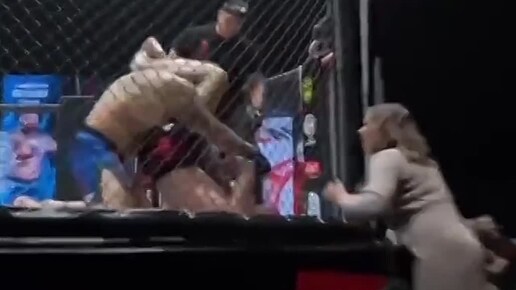 Сцепилась с охранником и рванула на ринг к мужу (Вот как надо болеть за любимого мужчину)