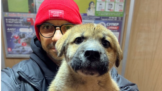 Щенка бросили в подъезде. Забрал домой.