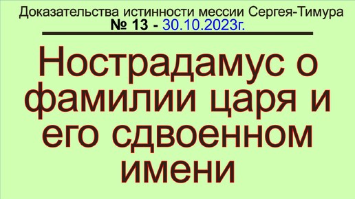 а84 Пророчество Нострадамуса о фамилии царя. Грядущий царь записал учение о матрице.