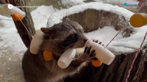 Для енотов-полоскунов Молли и Фунтика устроили кулинарный квест! С каким же рвением они накинулись на эту съедобную гирлянду