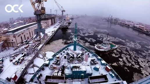 Маленькие помощники: буксиры помогают огромному атомному ледоколу выйти в море