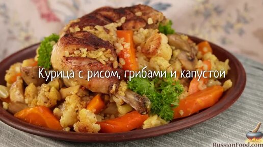 Румяная курочка сразу с гарниром. Окорочка с рисом и грибами в рукаве
