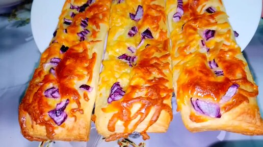 Слойки из слоеного дрожжевого теста!!! Слойки с сыром и луком!!! Вкуснятина!!! Рецепт👍