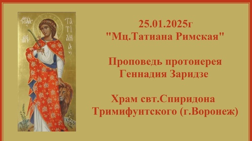 25.01.2025г "Мц.Татиана Римская" Проповедь протоиерея Геннадия Заридзе. Храм свт.Спиридона Тримифунтского (г.Воронеж)