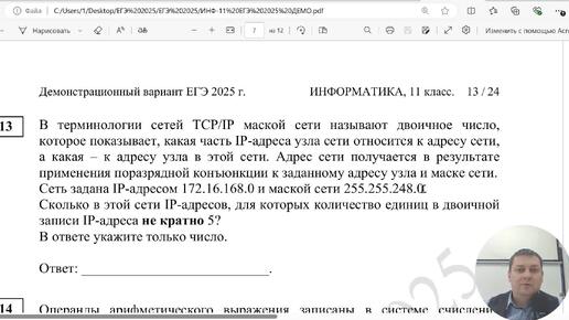 Разбираемся с задачей №13 из демоверсии ЕГЭ по информатике за 2025 год. IP-адреса и маски - разжевываю вариации оформления ручками и кодом