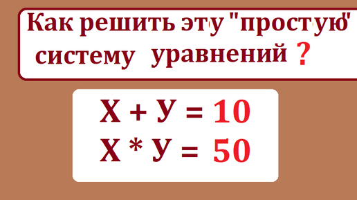 Как решить эту несложную систему уравнений? х+у=10; х*у = 50