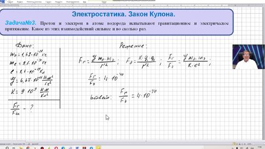 Физика10 ОК 045 Задача 3 Закон Кулона. Протон и электрон в атоме водорода испытывают гравитационное и электрическое притяжение. Какое из ...