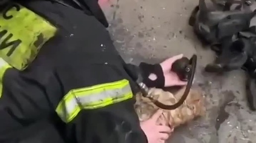 😍 Пожарный спасает котика, делая ему искусственное дыхание.