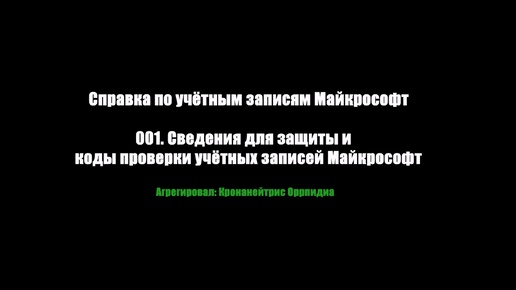 001. Сведения для защиты и коды проверки учётных записей Майкрософт