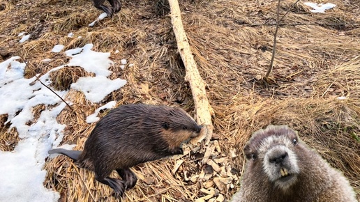 Увидел то, что они сделали , но их самих я не заметил . Бобры на проточной речке построили плотину.