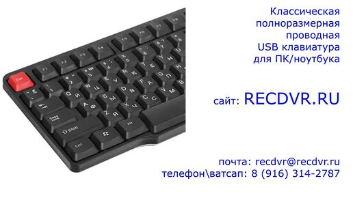 Черная проводная полноразмерная USB клавиатура для персонального компьютера