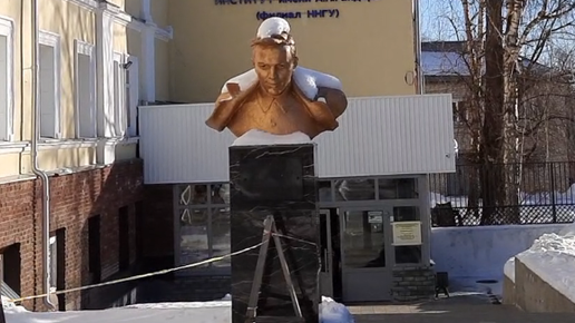 У памятника Гайдару возле института на улице Маркса в Арзамасе