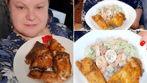 Терпуг жареный🐟 и салат 🥗 Рубрика Готовим вместе 👩🍳 Мукбанг ☕️
