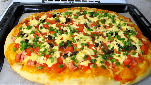 Вот так нужно готовить пиццу, настоящую домашнюю. Тесто идеальное, никаких сложностей. Мягкое, хорошо пропечённое, пицца сочная и вкусная.