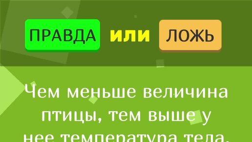Это ПРАВДА или ЛОЖЬ? Чем меньше величина птицы, тем выше у нее температура тела.