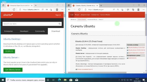 Установка Ubuntu 22.04 второй системой к Windows 10