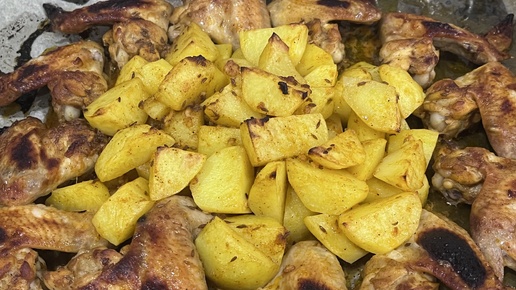 Куриные крылышки в духовке с картошкой