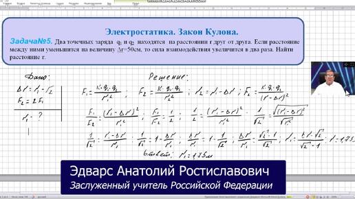 Физика10 ОК 045 Задача 5 Закон Кулона. Два точечных заряда q1 и q2 находятся на расстоянии r друг от друга. Если расстояние между ними ...