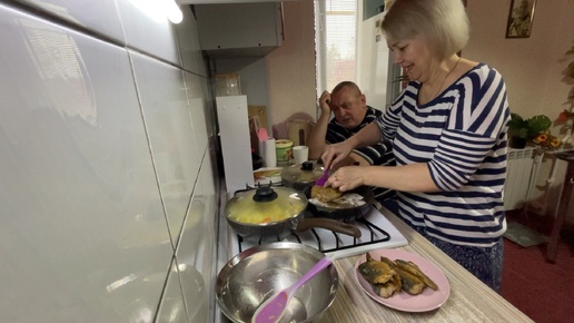 Жарим рыбу скумбрию , тушим капусту и курицу.
