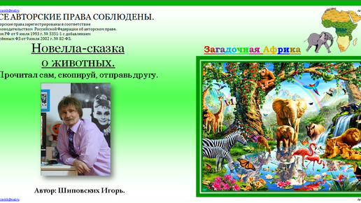 ОЗВУЧКА АВТОРА!!! 65. Сказка о ловких сурикатах, увальне слоне и других обитателей джунглей.