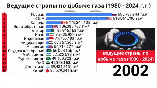 Ведущие страны по добыче газа с 1980 года