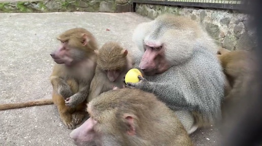 Гамадрил Нафаня усадил вокруг себя самок, а они стали воровать у него угощения!