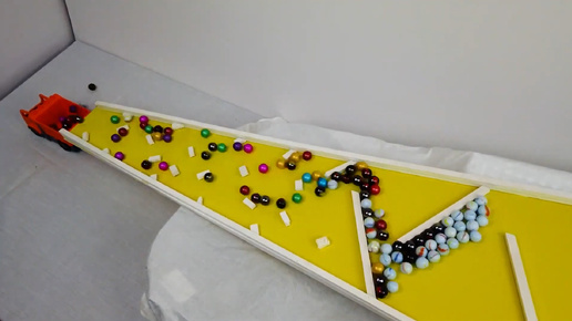 Шарики катятся с горки - 500 шариков и три горки.